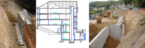 Housing development consisting of 215 houses & apartments situated on the site of a former leatherworks, therefore requiring significant remediation works. A variety of foundation techniques were adopted including: deep trench fill, pile with pre-cast tensioned groundbeam and pile with insitu groundbeam.